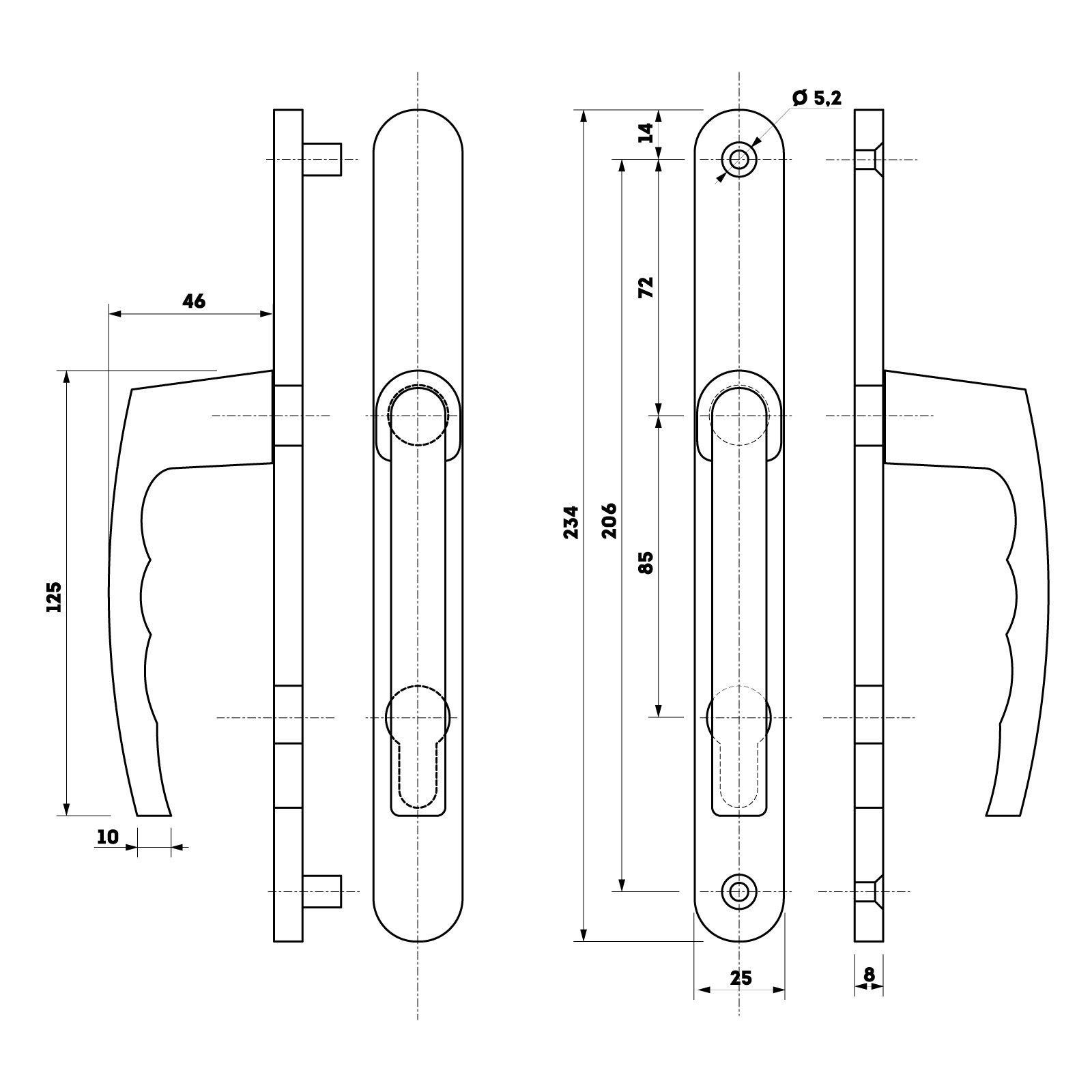 БУЛАТ РФ 85.25.02.7024 УРАЛ графит с пружин. м/о 85 "под пальчики" для узкопр. Комплект ручек