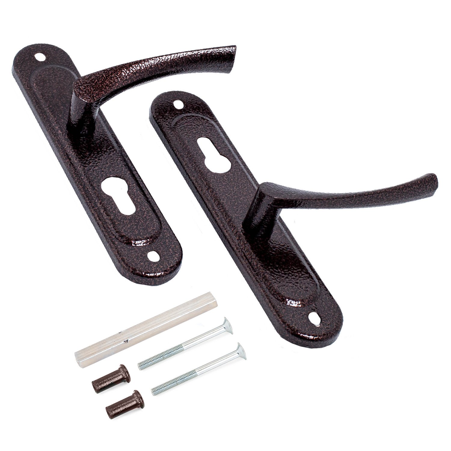 Ручка дверная на планке РФ1-55.17 имеет увеличенный размер планок и позволяет скрыть дефекты на двери от старых ручек. Совместимы со всеми замками с межосевым расстоянием 55 мм и евроцилиндром. Комплектуются квадратом 130 мм.