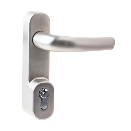 Ручки на планке под евроцилиндр и глухие для противопожарных дверей. Ручки накладные с фиксацией полуцилиндром для обычных или узкопрофильных дверей эвакуационных выходов.