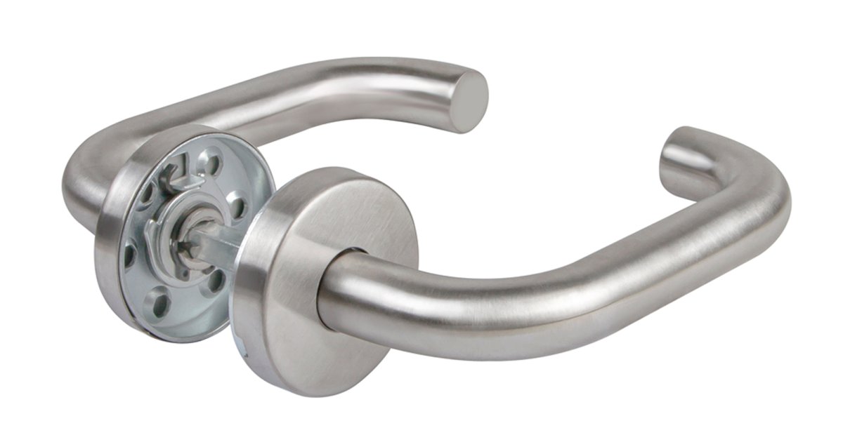 Ручка дверная UNDER R2 CSA/CRO, раздельная на круглой розетке, цвет матовый хром/хром, латунь
