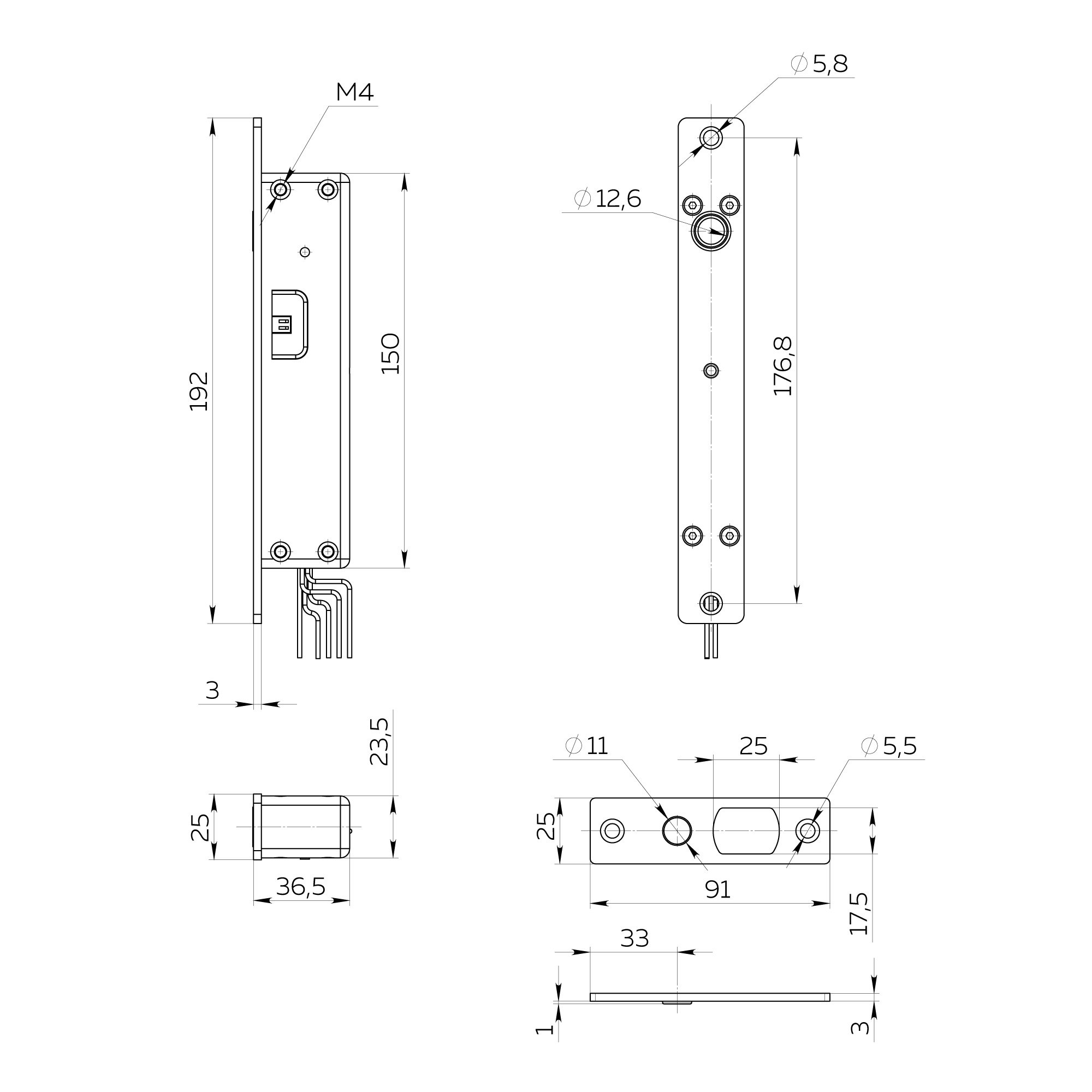 Габаритные размеры 192х25х37мм.