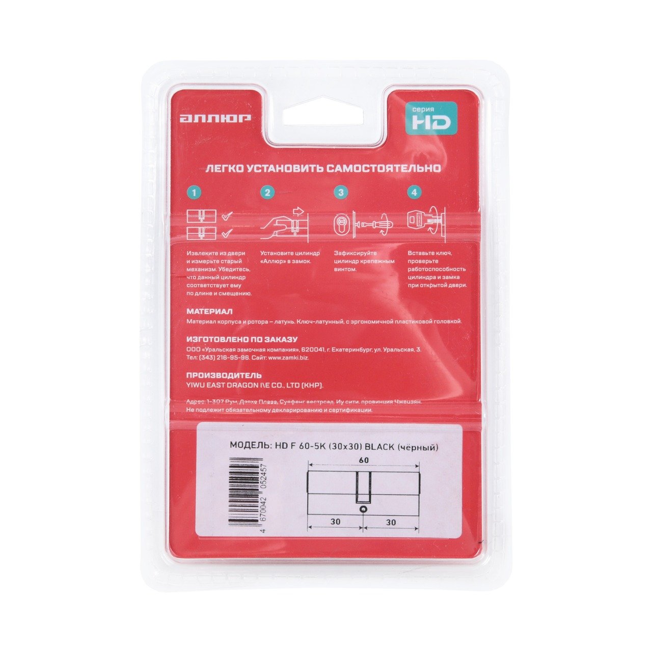 АЛЛЮР HD F 60-5К BLACK (30x30) черный перф.кл БЛИСТЕР Цилиндровый механизм