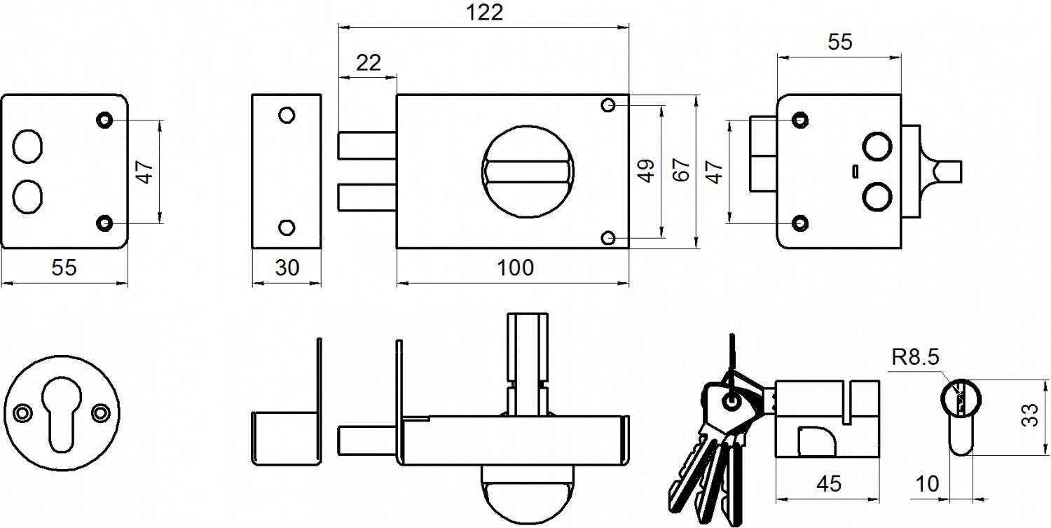 Замок накладной цилиндровый ЗН1 2Р со стальным корпусом предназначен для установки в деревянные двери. Оснащен двумя стальными ригелями диаметром 14 мм. Механизм секрета цилиндрический односторонний с английским ключом. Укомплектован 4-мя ключами, запорной коробкой и накладкой.