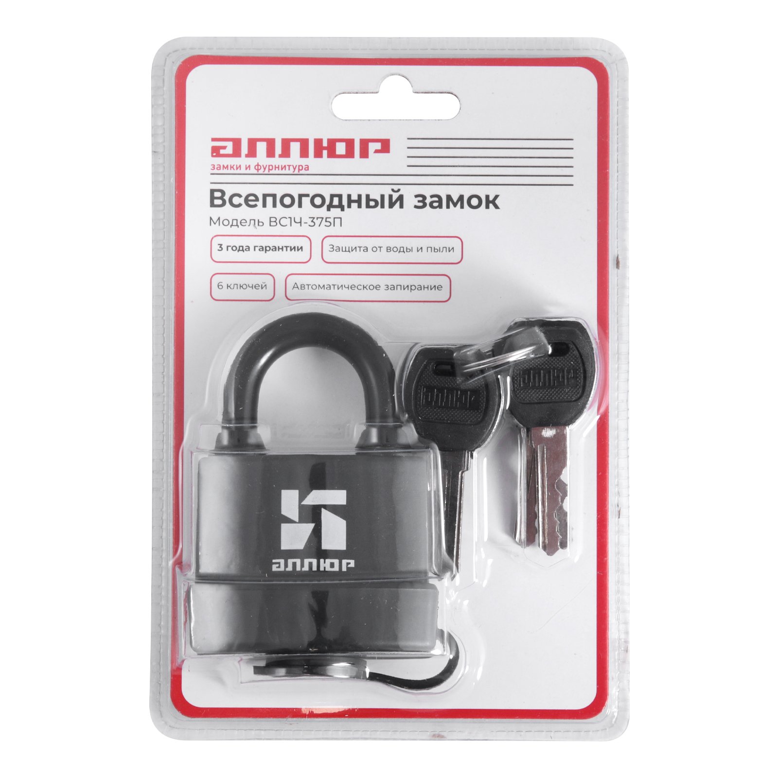 АЛЛЮР ВС1Ч- 375П всепогодный. 6 кл. d8,5мм Замок навесной