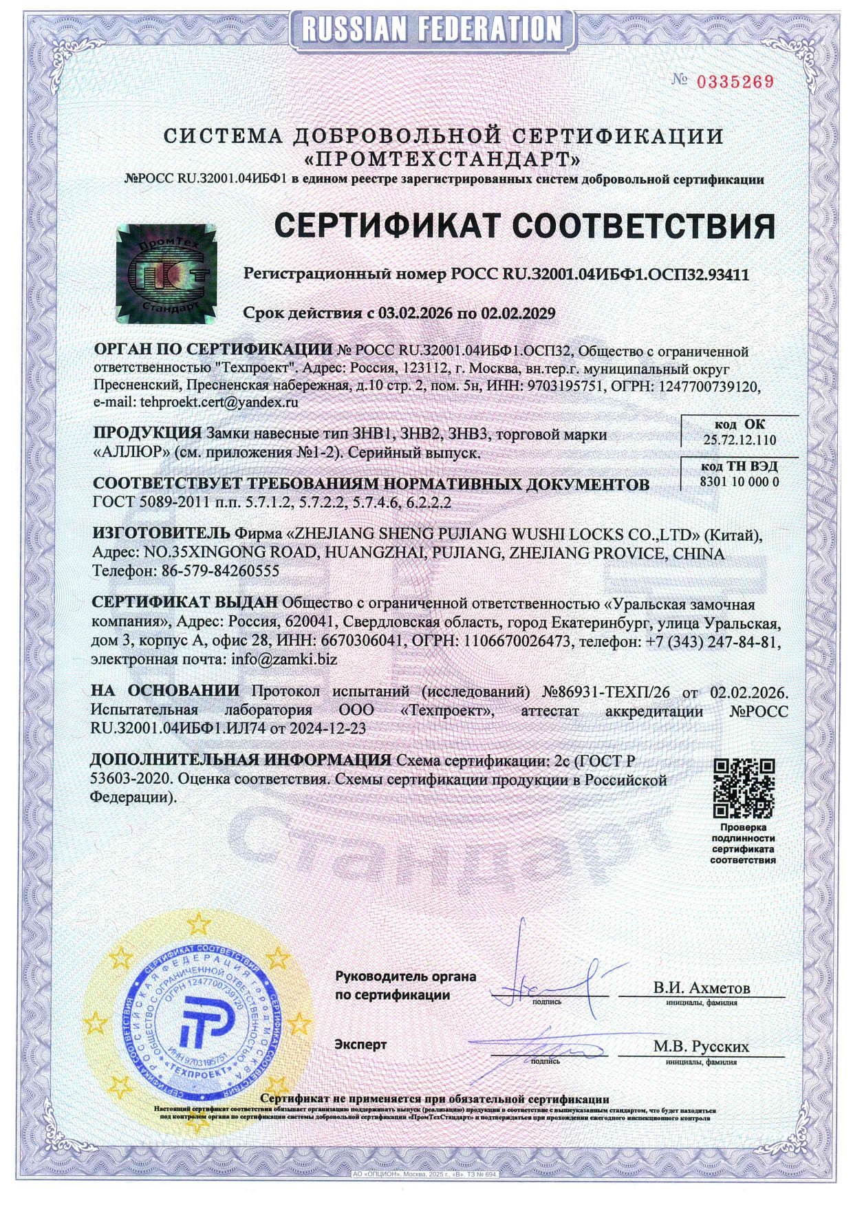 АЛЛЮР ВС2С-601Черный d10,7мм Замок навесной