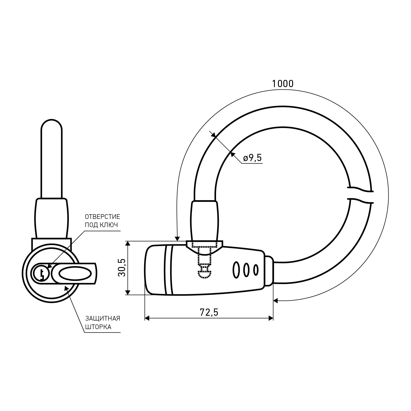 АВАНГАРД ВС-Т10 (1000 мм) ТЕХНО ИНДИГО Замок велосипедный тросовый