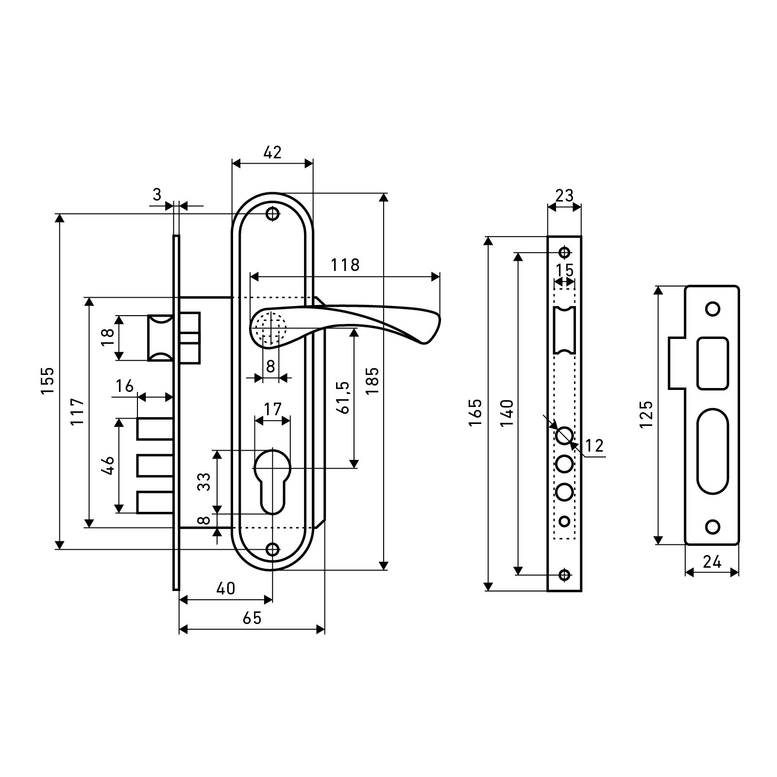 АЛЛЮР 103/3-61А(1203) GP латунь мал.корпус Замок врезной с/руч