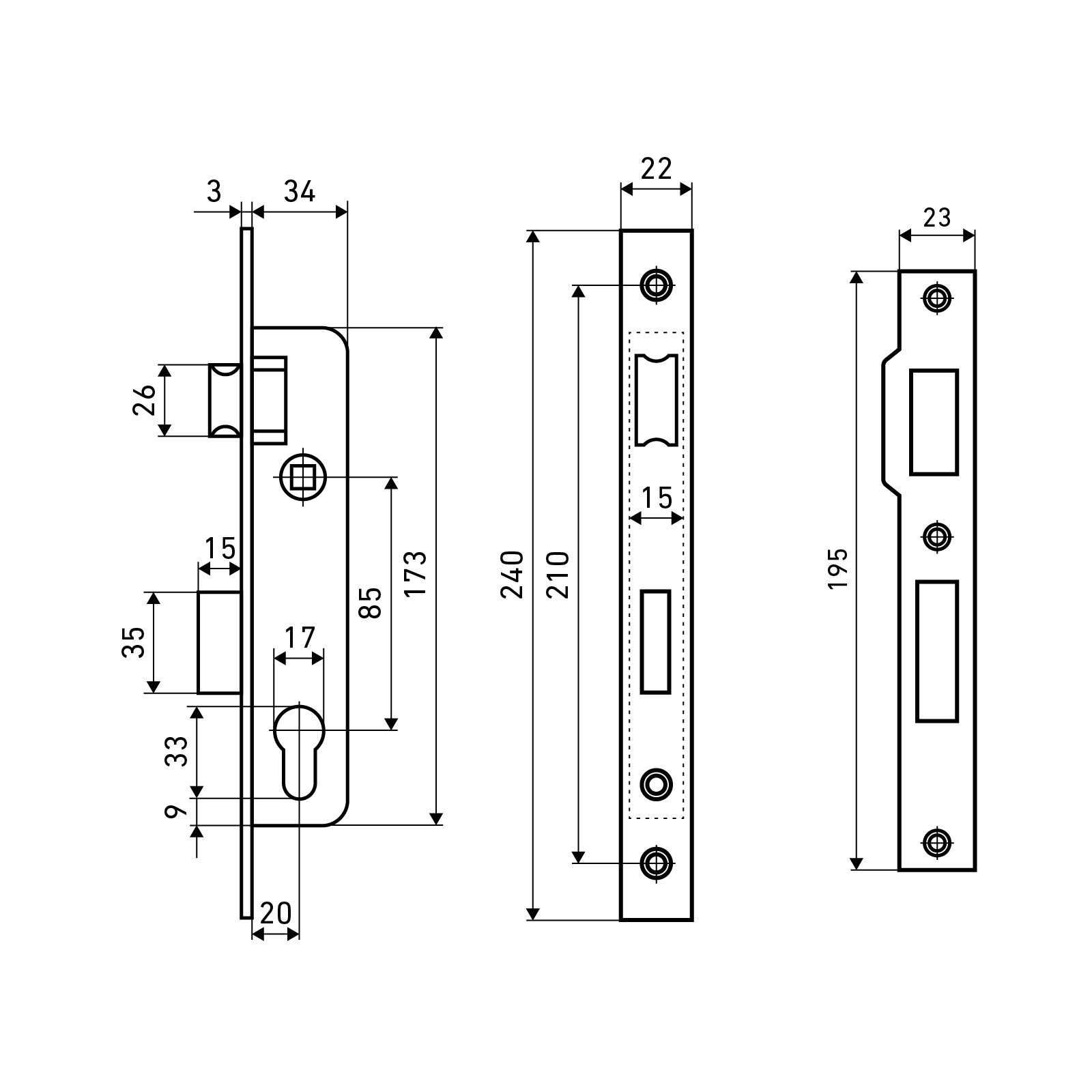 АЛЛЮР 7011-20 СР хром узкопроф с защ. б/мех.Замок врезной б/руч