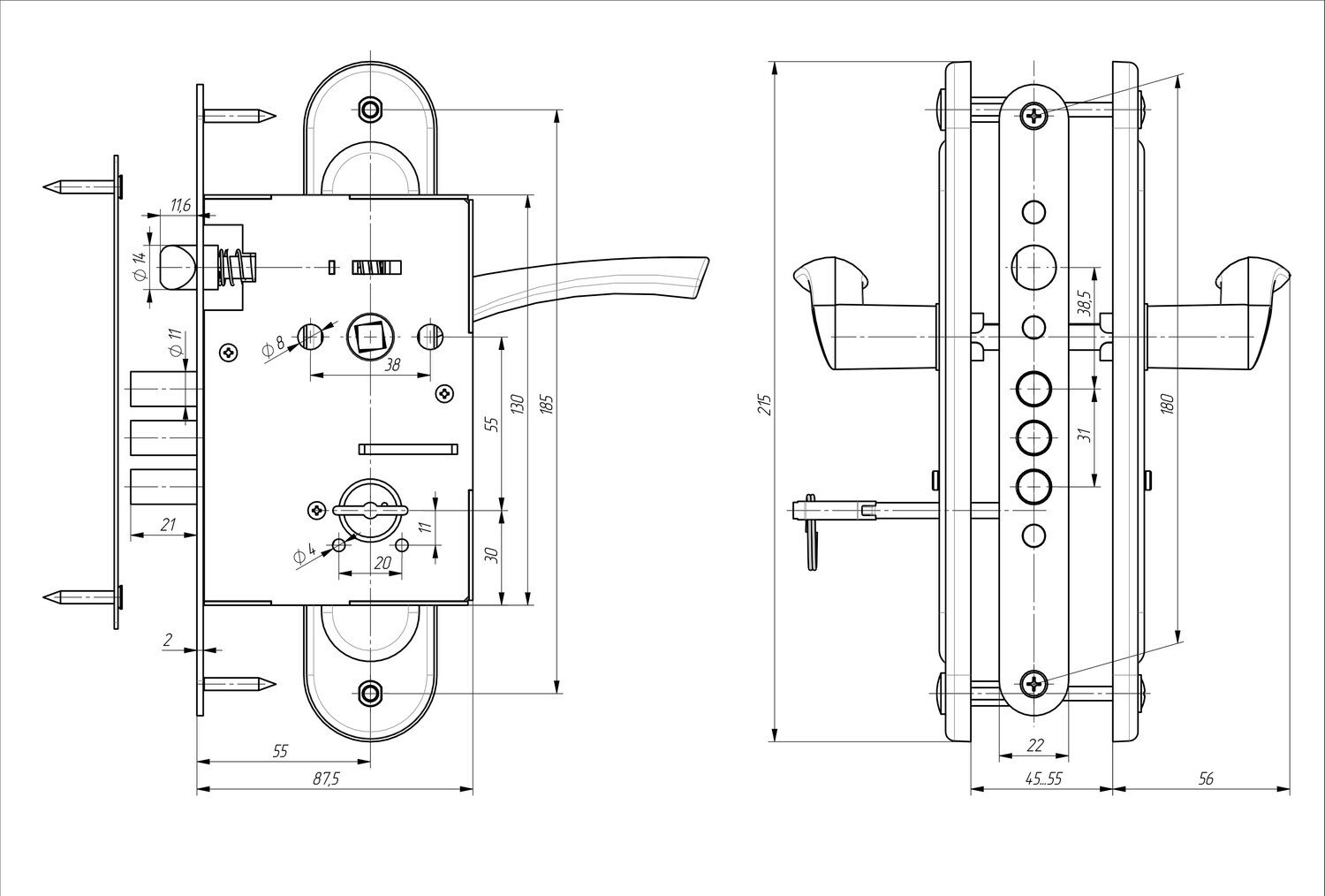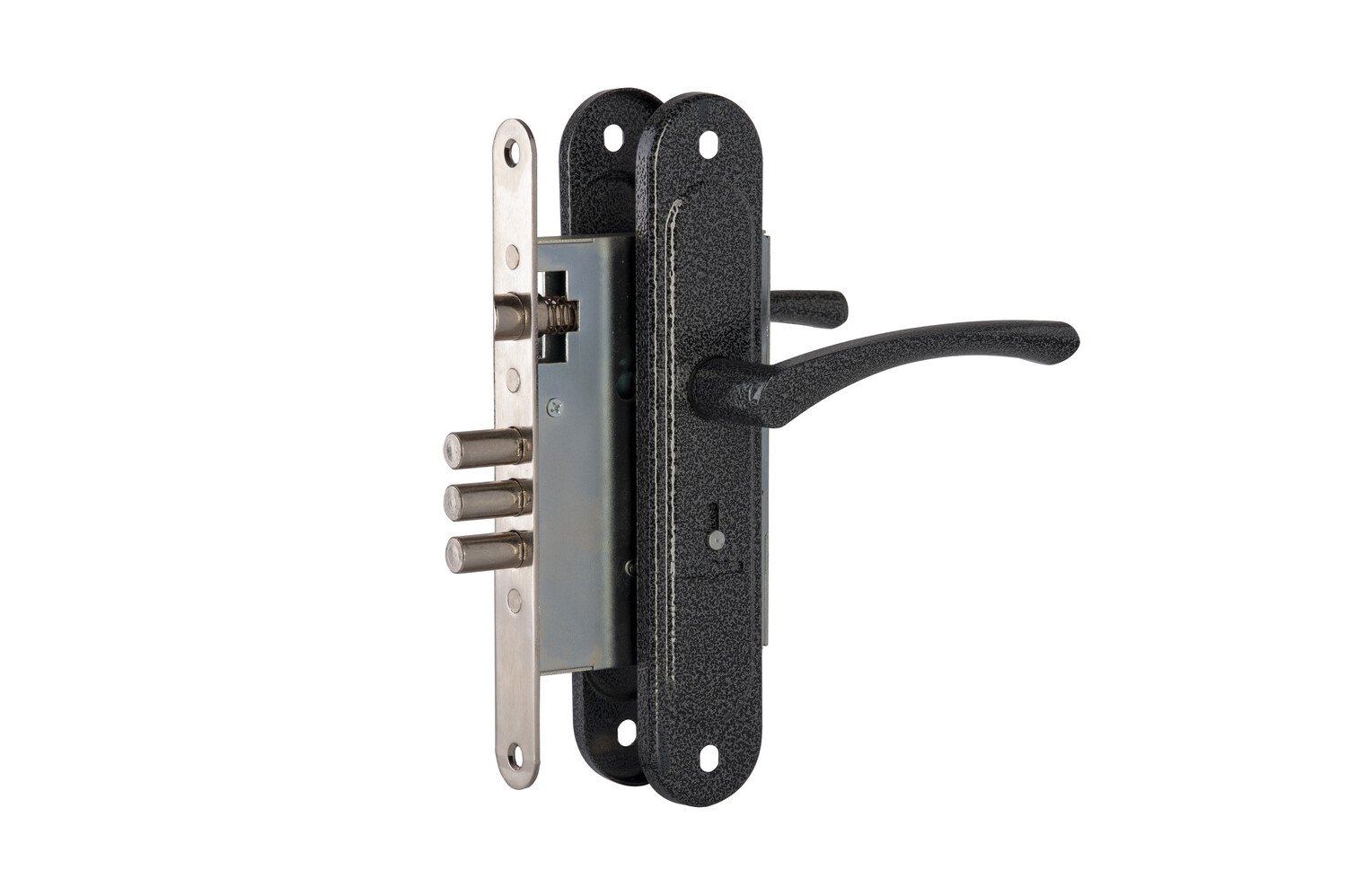 Замок врезной сувальдный с защёлкой в комплекте с ручкой ЗВ9.009/17 имеет популярные посадочные размеры. Межосевое расстояние 55 мм. В замке реализована новая система, которая позволила добиться минимального рабочего хода ручек и максимально уменьшить их свободный ход. Стальная защелка и засов гарантируют высокую надежность и долговечность работы. Ресурс работы более 200 000 циклов.