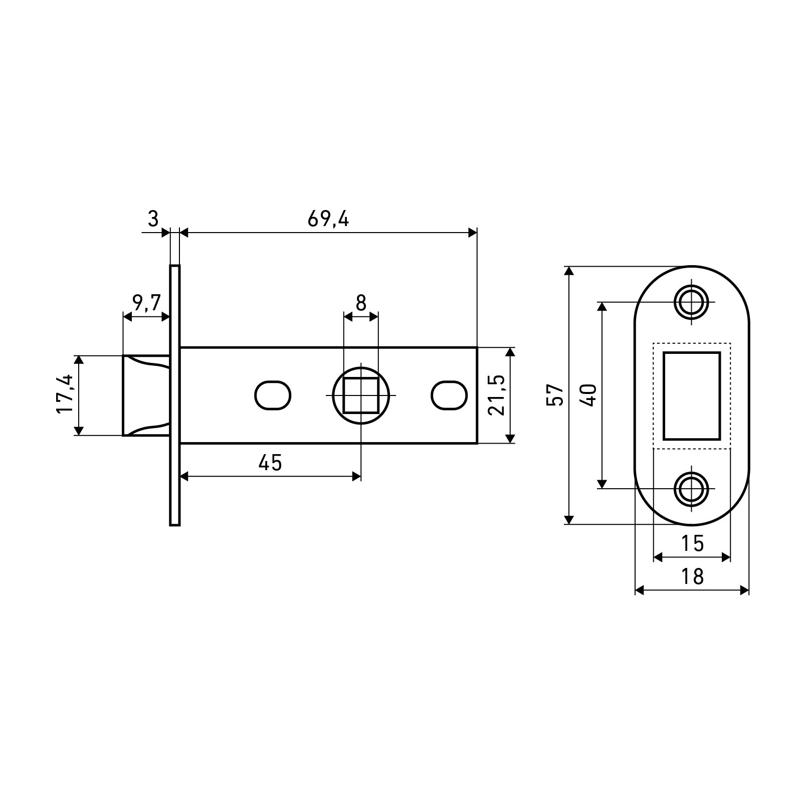 АЛЛЮР АРТ L45-8-PR18 SB мат.золото пластик овал.торц.планка18мм б/ручек Защёлка