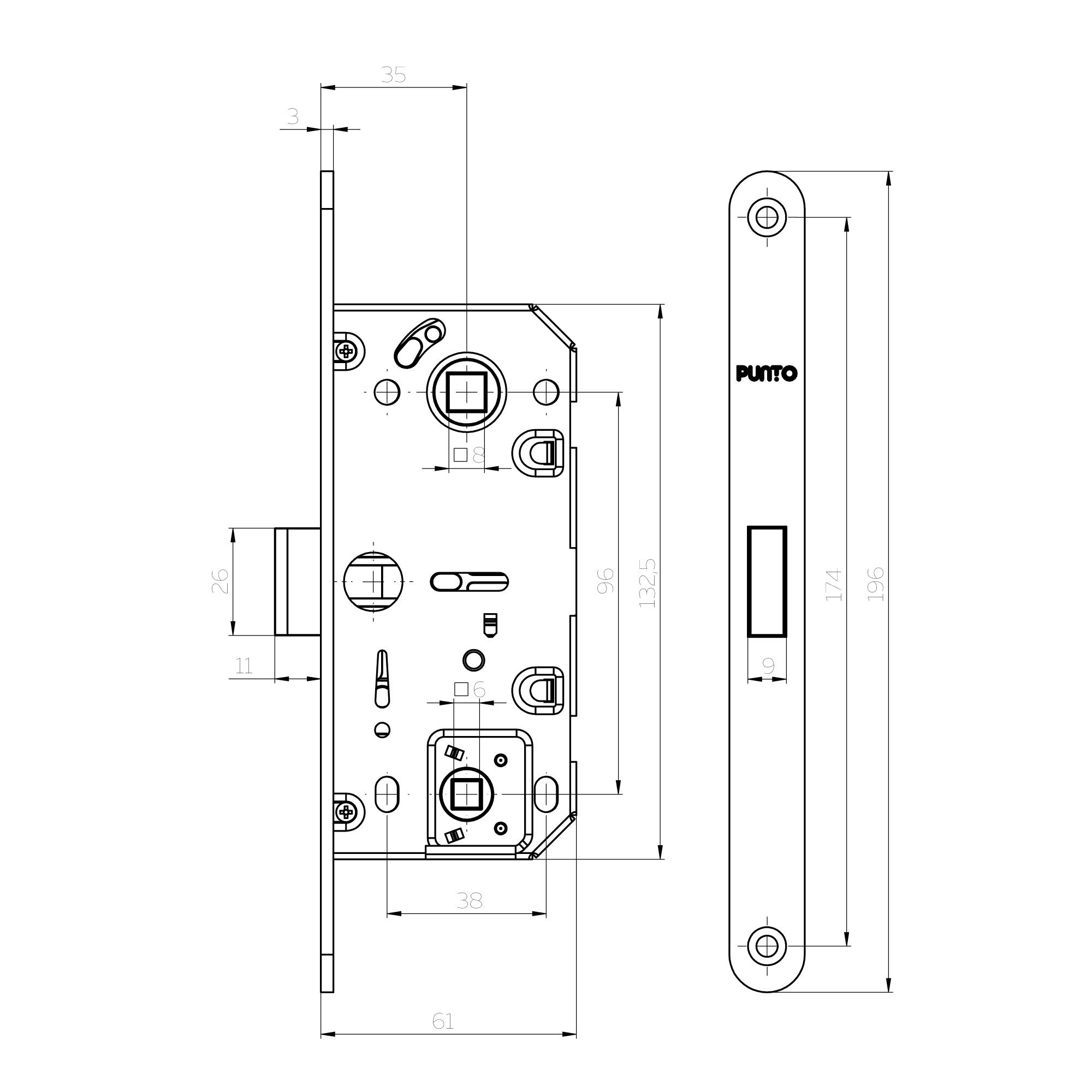 Дверная магнитная защелка Punto серии ML96WC-35/IND предназначена для установки в деревянные межкомнатные двери, профильные двери, где необходим малый бексет защелки или недостаточно места для стандартного бексета 50мм, подходит для дверей левого и правого открывания. Корпус выполнен из стали. Бесшумность работы обеспечивается за счет магнитного механизма, который фиксирует дверь только в закрытом положении. Защелка прошла испытания и имеет высший 4 класс надежности (250 000 циклов открывания/закрывания), что позволяет рекомендовать их для установки на двери помещений с большой проходимостью. Упаковка : тех.пакет. Бэксет - 35 мм.