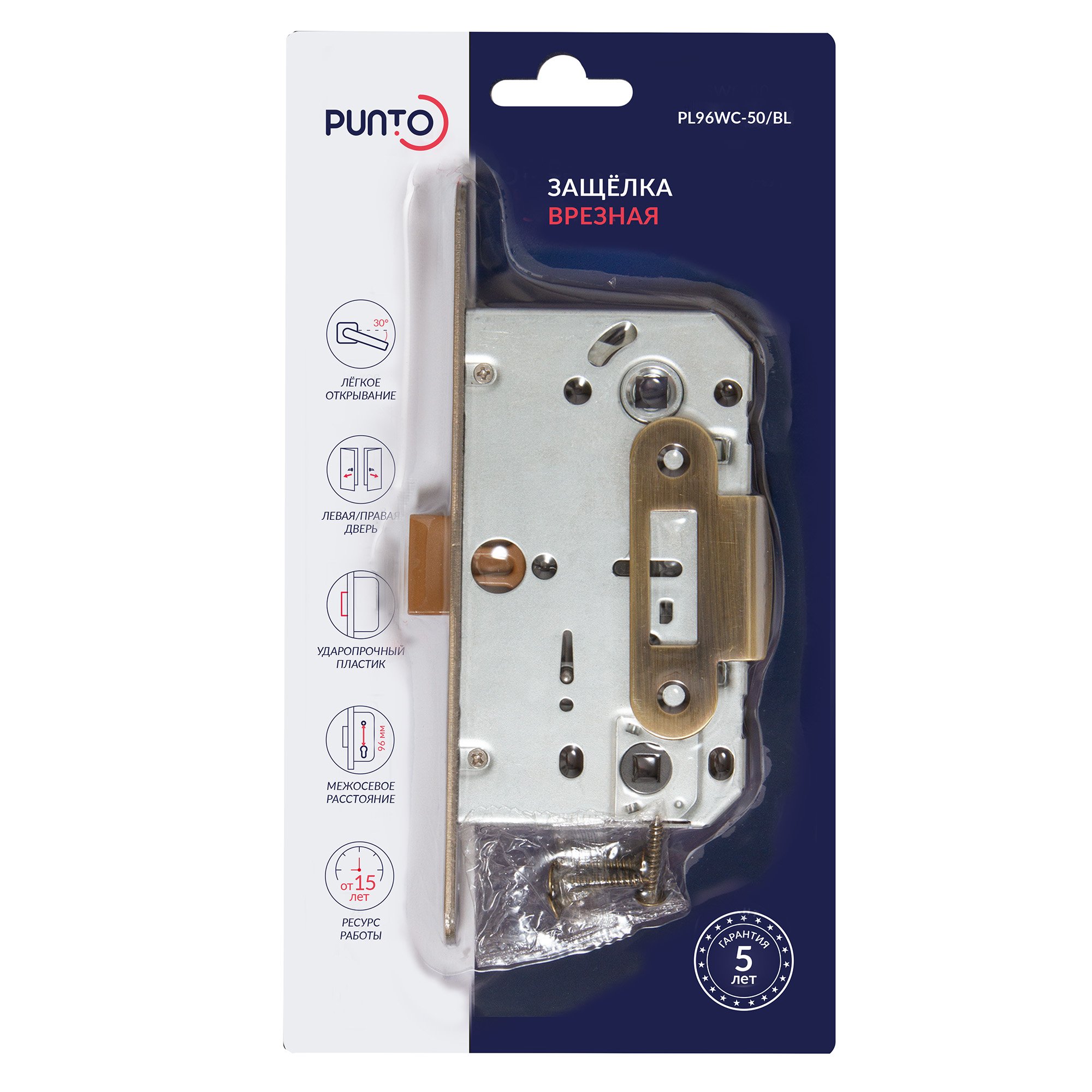 Классические защелки Punto cерии PL96WС-50/BL с запиранием предназначены для установки в деревянные межкомнатные и сантехнические двери. Язычок изготовлен из противоударного пластика и обеспечивает более тихую работу защелки. Защелка применяется совместно с нажимными ручками и поворотной ручкой.