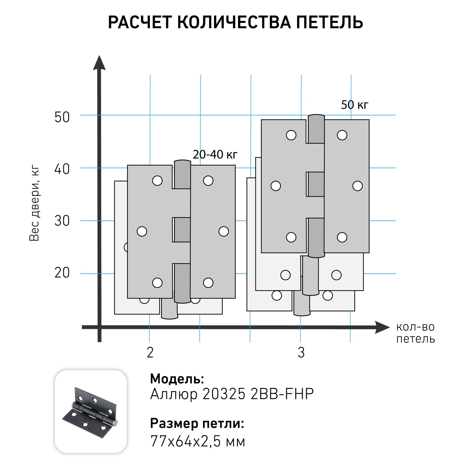 АЛЛЮР 20325 (77х64) 2BB-FHP BL 2 подш.,черная Петля дверная 2 шт