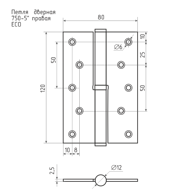 Петля левая/правая 750-5" ECO (120*80*2,5) без колп. - Матовый кофе - Правая