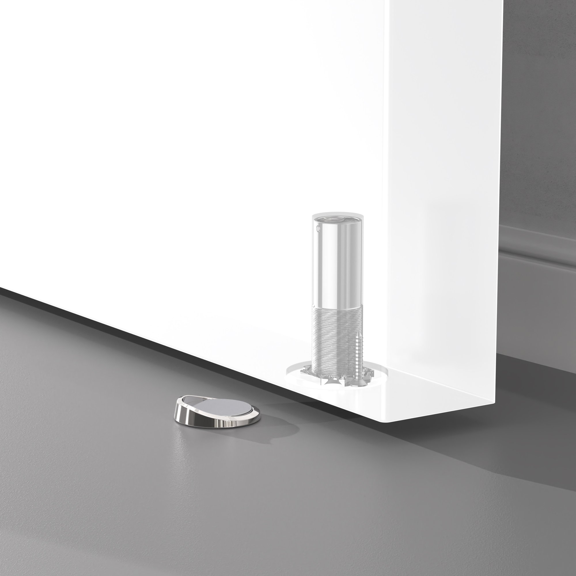 Магнитный дверной упор скрытого монтажа MAX2 предназначен для установки на дверное полотно толщиной от 35 мм. Установка упора производится в нижний торец дверного полотна. Ответная часть с магнитом фиксируется на полу клейкой лентой и саморезом, длина которого специально рассчитана для безопасной установки в систему "теплый пол", а увеличенная стенка обеспечивает надежную фиксацию дверного полотна. Корпус магнита, выполненный из нержавеющей стали INOX304, устойчив к возникновению коррозии и гарантирует долгий срок службы.